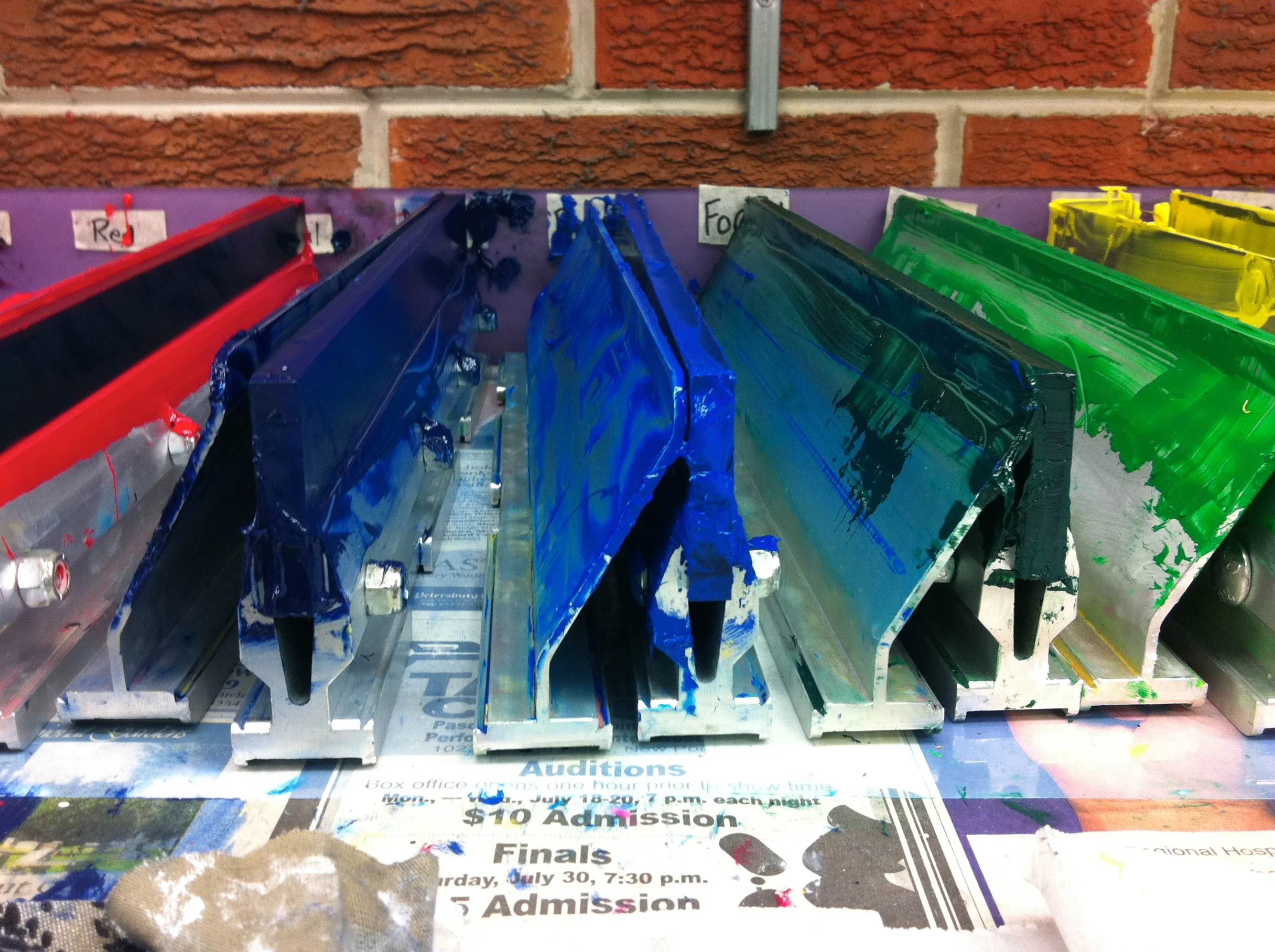 At our Oregon facility, logo designs become transfers ready to print on apparel onsite at your event. While many companies print their transfers using a laser or ink jet printer, we use a very labor-intensive process whereby plastisol ink is screen-printed one-color-at-a time.